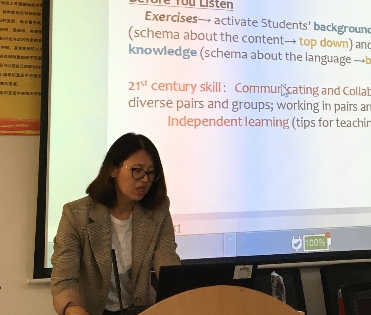 刘云霞分享了《TED演讲与视听说教学》,重点介绍了《全新版大学英语视听说教程》这本教材的设计理念和思路,就如何在视听说教学中融入TED演讲以及如何培养学生的批判性思维提出了具体可行的建议。