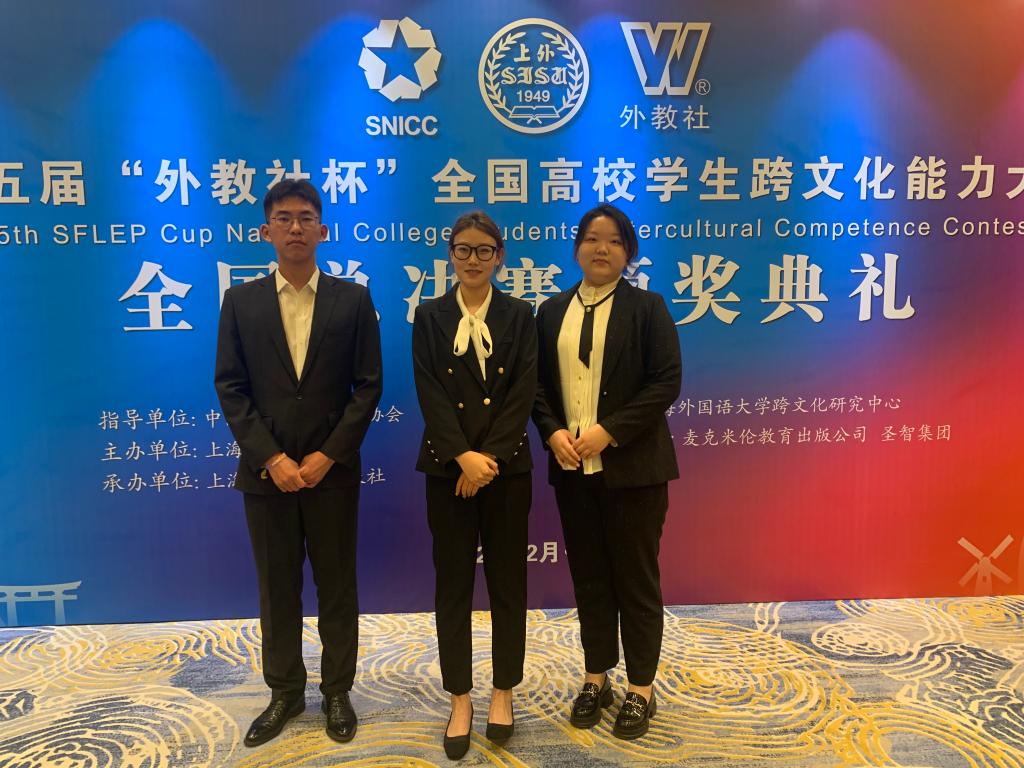 2023年2月24日至26日,第五届“外教社杯”全国高校学生跨文化能力大赛全国决赛在上海举行,我校经济学院高晨峻、齐玥佳、张淼组成的青岛大学团队获得全国决赛二等奖,ag九游会官网
